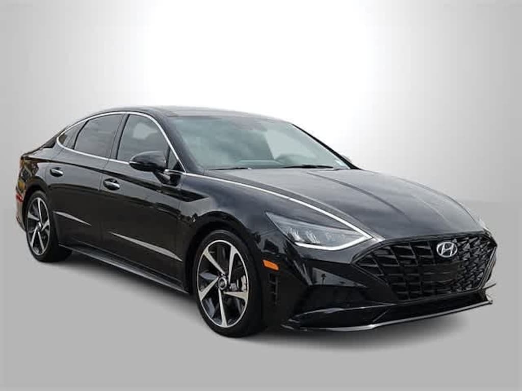 Our Certified Clean Carfax 2022 Hyundai Sonata SEL Plus Sedan adds a boost of excitement to your driving in Black! Powered by a TurboCharged 1.6 Liter 4 Cylinder generating 180hp for an 8 Speed Shiftronic Automatic transmission for brisk acceleration. This Front Wheel Drive sedan also enhances your travel with a multimode performance system, and it returns nearly 37mpg on the highway. Our Sonatas sleek look stirs the senses, while top-shelf details extend to a panoramic sunroof, LED lighting, sport-style bumpers, twin-tipped exhaust, alloy wheels, and a hands-free trunk.