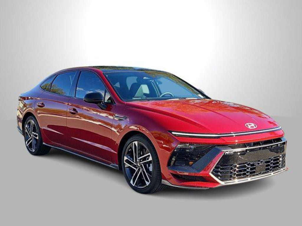 Sporty, responsive, and boldly styled, our 2025 Hyundai Sonata N Line Sedan in Ultimate Red delivers turbo performance, sleek design, and upgraded comfort. Motivated by a TurboCharged 2.5 Liter 4 Cylinder providing 290hp tethered to a paddle-shifted 8 Speed Dual-Clutch Automatic transmission for bold acceleration. Also featuring an athletically tuned suspension to inspire extreme corner carving, this Front Wheel Drive sedan sees nearly 32mpg on the highway. A sleek design elevates our Sonata with LED lighting, an aggressive N Line grille/bumpers, 19-inch alloy wheels, gloss-black rocker panels, twin-tip exhaust, a panoramic sunroof, a rear spoiler, and a hands-free trunk.