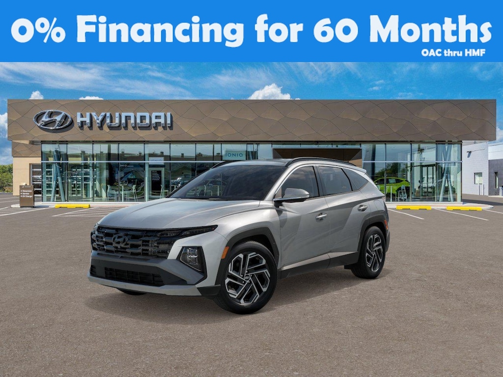 Shimmering Silver 2025 Hyundai Tucson Hybrid Limited AWD 6-Speed Automatic 1.6L I4 DGI Hybrid Turbocharged DOHC 16V LEV3-SULEV30 1.6L I4 DGI Hybrid Turbocharged DOHC 16V LEV3-SULEV30, 19 Alloy Wheels, 4-Wheel Disc Brakes, 8 Speakers, ABS brakes, Air Conditioning, Alloy wheels, AM/FM radio: SiriusXM, Apple CarPlay & Android Auto, Auto High-beam Headlights, Auto-dimming Rear-View mirror, Automatic temperature control, Brake assist, Bumpers: body-color, Carpeted Floor Mats, Delay-off headlights, Driver door bin, Driver vanity mirror, Dual front impact airbags, Dual front side impact airbags, Electronic Stability Control, Emergency communication system: Bluelink+, First Aid Kit, Four wheel independent suspension, Front anti-roll bar, Front Bucket Seats, Front Center Armrest, Front dual zone A/C, Front reading lights, Fully automatic headlights, Garage door transmitter: HomeLink, Heads-Up Display, Heated & Ventilated Front Bucket Seats, Heated door mirrors, Heated front seats, Heated rear seats, Heated steering wheel, Illuminated entry, Leather steering wheel, Leather-Trimmed Seat Trim, Low tire pressure warning, Memory seat, Navigation System, Occupant sensing airbag, Option Group 01, Outside temperature display, Overhead airbag, Overhead console, Panic alarm, Passenger door bin, Passenger vanity mirror, Power door mirrors, Power driver seat, Power Liftgate, Power moonroof, Power passenger seat, Power steering, Power windows, Radio data system, Radio: Bose Premium w/AM/FM/HD Audio System, Rain sensing wipers, Rear anti-roll bar, Rear reading lights, Rear seat center armrest, Rear side impact airbag, Rear window defroster, Rear window wiper, Remote keyless entry, Security system, Speed control, Split folding rear seat, Spoiler, Steering wheel mounted audio controls, Tachometer, Telescoping steering wheel, Tilt steering wheel, Traction control, Trip computer, Turn signal indicator mirrors, Variably intermittent wipers, Ventilated front seats, 1.6L I4 DGI Hybrid Turbocharged DOHC 16V LEV3-SULEV30.
