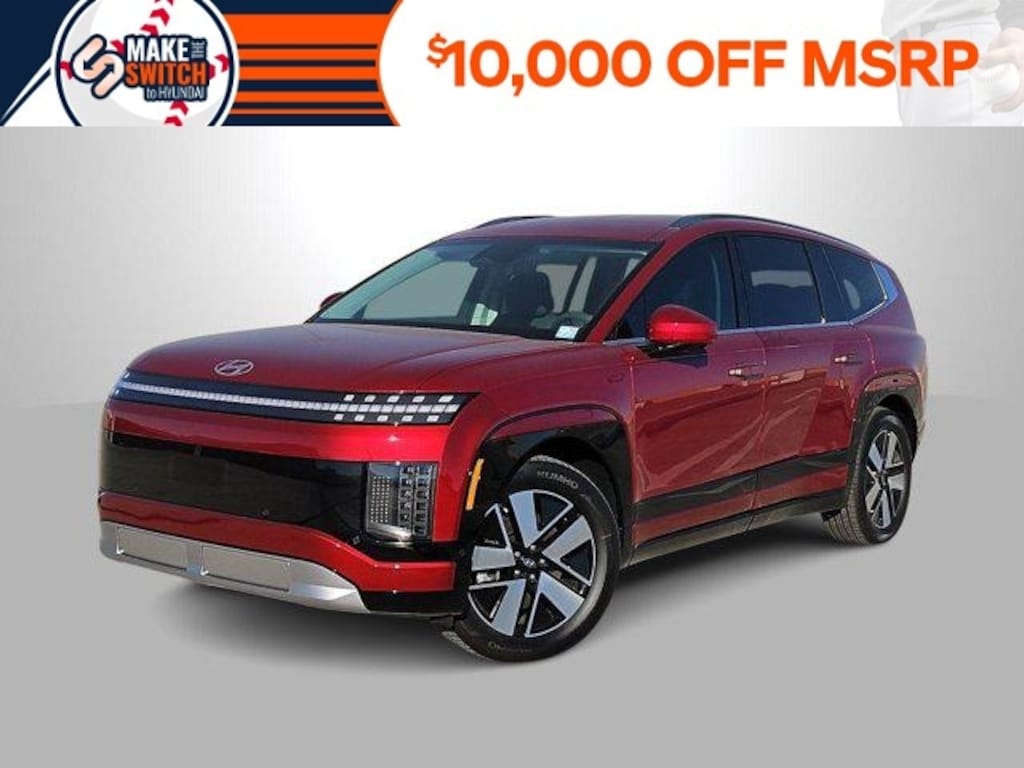Ultimate Red 2026 Hyundai IONIQ 9 SEL AWD 1-Speed Automatic Electric Motor 20 x 8J Alloy Wheels, 4-Wheel Disc Brakes, 8 Speakers, ABS brakes, Air Conditioning, Alloy wheels, AM/FM radio: SiriusXM, Apple CarPlay & Android Auto, Auto High-beam Headlights, Auto-dimming Rear-View mirror, Auto-leveling suspension, Automatic temperature control, Ball Mount Kit, Bodyside moldings, Brake assist, Bumpers: body-color, Cargo Cover, Cargo Net, Carpeted Floor Mats, Charging Port Applique, Delay-off headlights, Driver door bin, Driver vanity mirror, Dual front impact airbags, Dual front side impact airbags, Electronic Stability Control, First Aid Kit, Four wheel independent suspension, Front anti-roll bar, Front Bucket Seats, Front Center Armrest, Front dual zone A/C, Front reading lights, Fully automatic headlights, Garage door transmitter: HomeLink, H-Tex Leatherette Seating Surfaces, harman/kardonî Speakers, Heated door mirrors, Heated front seats, Heated rear seats, Heated steering wheel, Illuminated entry, Leather steering wheel, Low tire pressure warning, Navigation System, Occupant sensing airbag, Option Group 01, Outside temperature display, Overhead airbag, Overhead console, Panic alarm, Passenger door bin, Passenger vanity mirror, Power door mirrors, Power driver seat, Power Liftgate, Power passenger seat, Power steering, Power windows, Radio: AM/FM/SiriusXM/HD Audio System, Rain sensing wipers, Rear air conditioning, Rear anti-roll bar, Rear reading lights, Rear seat center armrest, Rear side impact airbag, Rear window defroster, Rear window wiper, Reclining 3rd row seat, Remote keyless entry, Security system, Speed control, Split folding rear seat, Spoiler, Steering wheel mounted audio controls, Telescoping steering wheel, Tilt steering wheel, Tow Hitch, Traction control, Trip computer, Turn signal indicator mirrors, Variably intermittent wipers, Ventilated front seats.