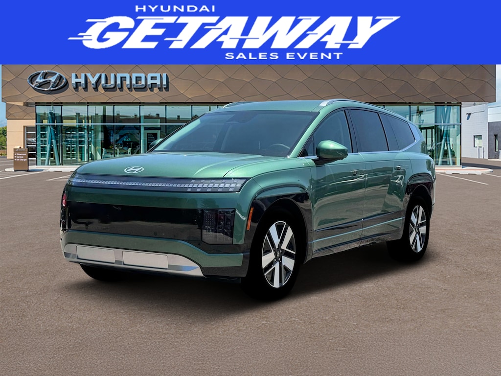 Elegantly refined, our 2026 Hyundai IONIQ 9 SEL AWD in Ionosphere Green Pearl surrounds you with premium innovation, electrified power, and upscale confidence. Motivated by Dual Electric Motors supplying a combined 422hp to a Single Speed Automatic transmission for exciting acceleration. Long-distance travel is easy with our All Wheel Drive SUV, which features a 106 kWh battery pack, allowing for nearly 311 miles at nearly 111 MPGe before needing to recharge, plus offers rapid charging. A sleek and detailed design gives our IONIQ 9 another advantage with an expansive sunroof, gloss-black accents, LED lighting, auto-deploying flush door handles, a hands-free trunk, and 21-inch Calligraphy-specific wheels.