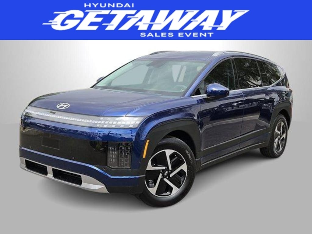 Elegantly advanced, our 2026 Hyundai IONIQ 9 SE AWD in Cosmic Blue Pearl delivers electrified luxury, premium innovation, and confident performance. Motivated by Dual Electric Motors supplying a combined 422hp to a Single Speed Automatic transmission for exciting acceleration. Long-distance travel is easy with our All Wheel Drive SUV, which features a 106 kWh battery pack, allowing for nearly 311 miles at nearly 111 MPGe before needing to recharge, plus offers rapid charging. A sleek and detailed design gives our IONIQ 9 another advantage with an expansive sunroof, gloss-black accents, LED lighting, auto-deploying flush door handles, a hands-free trunk, and 21-inch wheels.