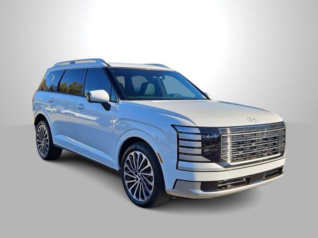 Creamy White Pearl 2026 Hyundai Palisade Hybrid Calligraphy FWD 6-Speed Automatic 2.5L Turbocharged GDI 4-Cylinder Hybrid 2.5L Turbocharged GDI 4-Cylinder Hybrid, 100W Charging Cable, 14 Speakers, 3rd row seats: split-bench, 4-Wheel Disc Brakes, ABS brakes, Air Conditioning, Alloy wheels, AM/FM radio: SiriusXM, Apple CarPlay & Android Auto, Audio memory, Auto High-beam Headlights, Auto-dimming door mirrors, Auto-dimming Rear-View mirror, Auto-leveling suspension, Automatic temperature control, Brake assist, Bumpers: body-color, Cargo Blocks, Cargo Cover, Cargo Net, Carpeted Floor Mats, Compass, Delay-off headlights, Driver door bin, Driver vanity mirror, Dual front impact airbags, Dual front side impact airbags, Electronic Stability Control, Emergency communication system: None, Exterior Parking Camera Rear, First Aid Kit, Four wheel independent suspension, Front anti-roll bar, Front Bucket Seats, Front Center Armrest, Front dual zone A/C, Front reading lights, Fully automatic headlights, Garage door transmitter: HomeLink, Genuine wood console insert, Genuine wood dashboard insert, Heads-Up Display, Heated and Ventilated Front Bucket Seats, Heated door mirrors, Heated front seats, Heated rear seats, Heated steering wheel, HVAC memory, Illuminated entry, Knee airbag, Leather steering wheel, Low tire pressure warning, Memory seat, Navigation System, Occupant sensing airbag, Option Group 01, Outside temperature display, Overhead airbag, Overhead console, Panic alarm, Passenger door bin, Passenger vanity mirror, Power door mirrors, Power driver seat, Power Liftgate, Power moonroof, Power passenger seat, Power steering, Power windows, Premium Nappa Leather Seat Trim, Radio data system, Radio: Infotainment Navigation System, Rain sensing wipers, Rear air conditioning, Rear anti-roll bar, Rear audio controls, Rear reading lights, Rear side impact airbag, Rear window defroster, Rear window wiper, Reclining 3rd row seat, Remote keyless entry, Security system, Speed control, Split folding rear seat, Spoiler, Steering wheel mounted audio controls, Tachometer, Telescoping steering wheel, Tilt steering wheel, Traction control, Trip computer, Turn signal indicator mirrors, Variably intermittent wipers, Ventilated front seats, Ventilated rear seats, Wheels: 21 x 8.5J Alloy, 2.5L Turbocharged GDI 4-Cylinder Hybrid.