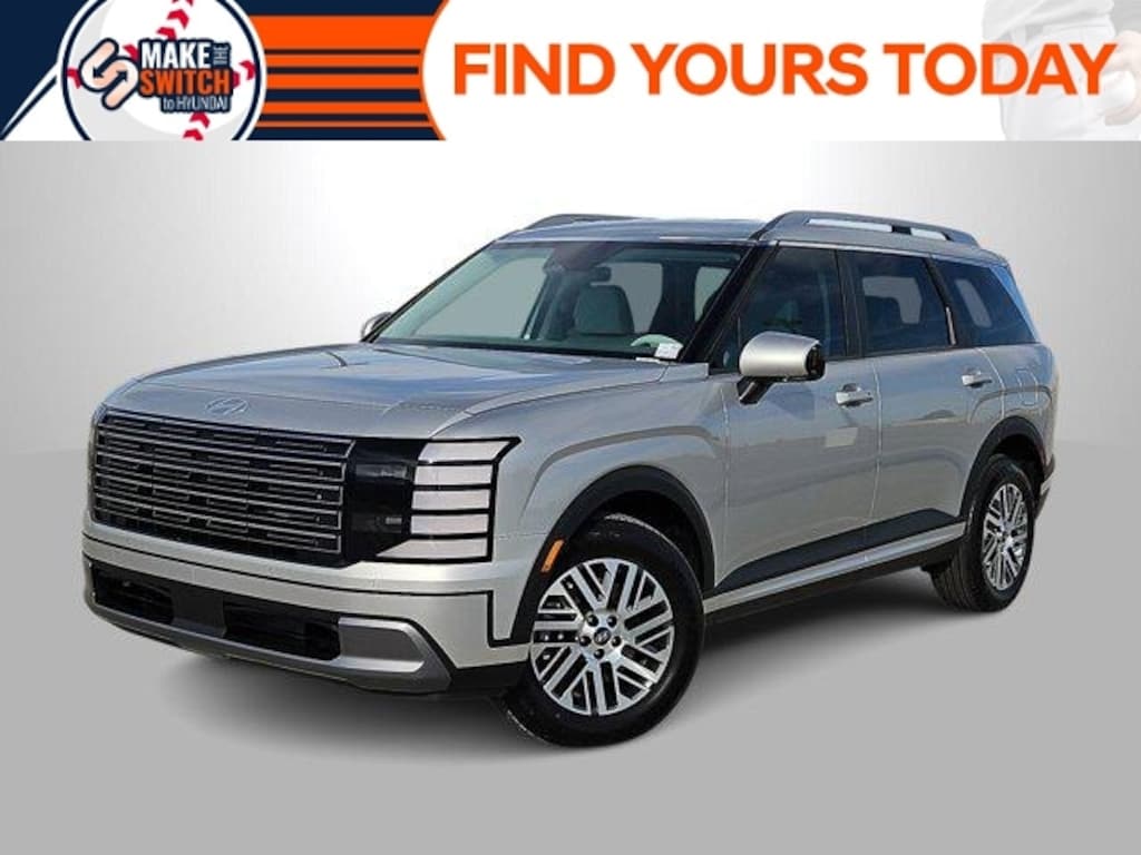 Typhoon Silver Metallic 2026 Hyundai Palisade SEL 7 Passenger FWD 8-Speed Automatic V6 100W Charging Cable, 3rd row seats: split-bench, 4-Wheel Disc Brakes, 8 Speakers, ABS brakes, Air Conditioning, All-Season Fitted Liners, Alloy wheels, AM/FM radio: SiriusXM, Apple CarPlay & Android Auto, Auto High-beam Headlights, Auto-dimming Rear-View mirror, Auto-leveling suspension, Automatic temperature control, Brake assist, Bumpers: body-color, Cargo Net, Cargo Tray, Carpeted Floor Mats, Compass, Delay-off headlights, Driver door bin, Driver vanity mirror, Dual front impact airbags, Dual front side impact airbags, Electronic Stability Control, Emergency communication system: None, Exterior Parking Camera Rear, First Aid Kit, Four wheel independent suspension, Front anti-roll bar, Front Bucket Seats, Front Center Armrest, Front dual zone A/C, Front reading lights, Fully automatic headlights, H-Tex Leatherette Seat Trim, Heated door mirrors, Heated Front Bucket Seats, Heated front seats, Illuminated entry, Knee airbag, Leather steering wheel, Low tire pressure warning, Navigation System, Occupant sensing airbag, Option Group 01, Outside temperature display, Overhead airbag, Overhead console, Panic alarm, Passenger door bin, Passenger vanity mirror, Power door mirrors, Power driver seat, Power Liftgate, Power steering, Power windows, Radio data system, Radio: Infotainment Navigation System, Rear air conditioning, Rear anti-roll bar, Rear audio controls, Rear reading lights, Rear side impact airbag, Rear window defroster, Rear window wiper, Reclining 3rd row seat, Remote keyless entry, Security system, Speed control, Split folding rear seat, Spoiler, Steering wheel mounted audio controls, Tachometer, Telescoping steering wheel, Tilt steering wheel, Traction control, Trip computer, Turn signal indicator mirrors, Variably intermittent wipers, Wheels: 18 x 8.0J Alloy.