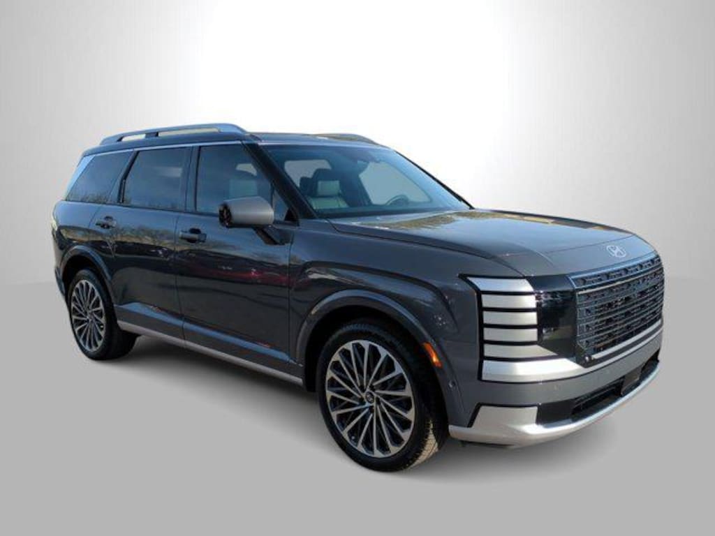 Our 2026 Hyundai Palisade Calligraphy AWD in Ecotronic Gray Pearl redefines the drive with cutting-edge safety, advanced digital displays, and seamless connectivity blended with confident performance. Driven by a 3.5 Liter V6 delivering 287hp through a paddle-shifted 8 Speed Automatic transmission for confident, smooth driving. Engineered with All Wheel Drive and multiple drive modes, this luxury SUV achieves nearly 24mpg on the highway while providing refined handling. Striking from every angle, the Palisade Calligraphy showcases upscale features like signature LED lighting, a dual-pane sunroof, exclusive 20-inch alloy wheels, silver roof rails, a hands-free smart liftgate, and a bold satin chrome grille.