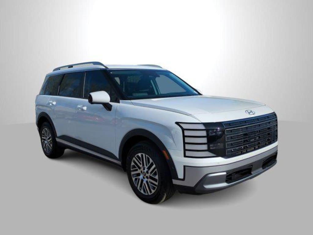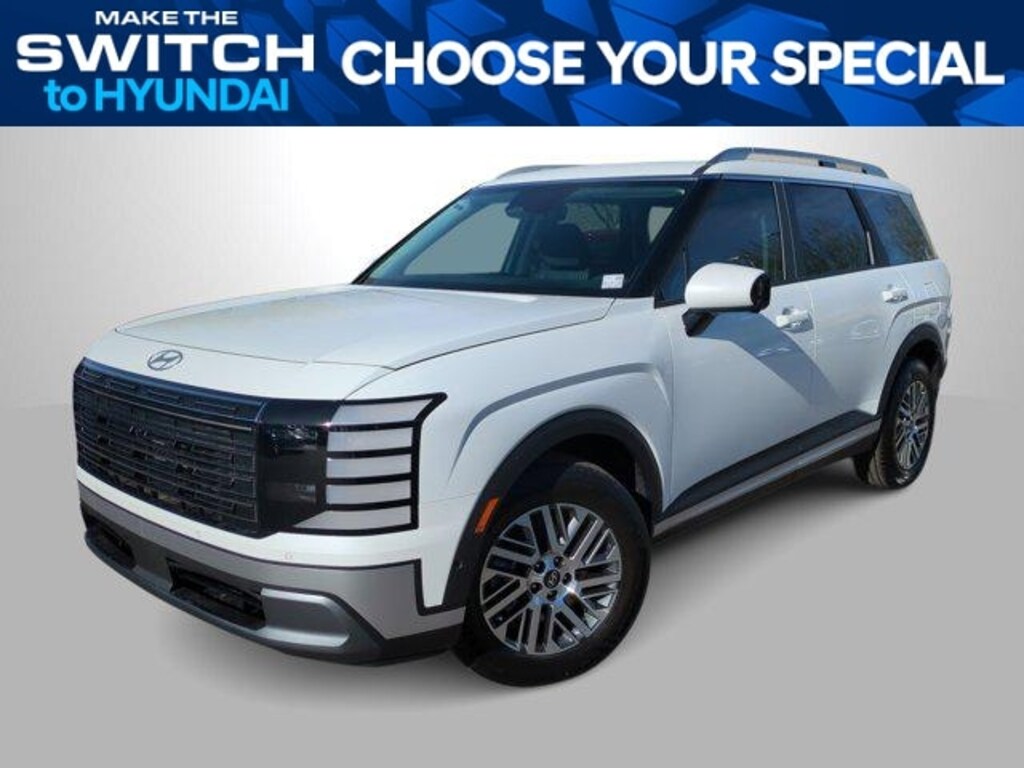 Creamy White Pearl 2026 Hyundai Palisade SEL Premium 7 Passenger AWD 8-Speed Automatic V6 3rd row seats: split-bench, 4-Wheel Disc Brakes, 8 Speakers, ABS brakes, Air Conditioning, Alloy wheels, AM/FM radio: SiriusXM, Apple CarPlay & Android Auto, Audio memory, Auto High-beam Headlights, Auto-dimming door mirrors, Auto-dimming Rear-View mirror, Auto-leveling suspension, Automatic temperature control, Brake assist, Bumpers: body-color, Carpeted Floor Mats, Compass, Delay-off headlights, Driver door bin, Driver vanity mirror, Dual front impact airbags, Dual front side impact airbags, Electronic Stability Control, Emergency communication system: None, Exterior Parking Camera Rear, Four wheel independent suspension, Front anti-roll bar, Front Bucket Seats, Front Center Armrest, Front dual zone A/C, Front reading lights, Fully automatic headlights, Garage door transmitter: HomeLink, H-Tex Leatherette Seat Trim, Heated and Ventilated Front Bucket Seats, Heated door mirrors, Heated front seats, Heated rear seats, Heated steering wheel, HVAC memory, Illuminated entry, Knee airbag, Leather steering wheel, Low tire pressure warning, Memory seat, Navigation System, Occupant sensing airbag, Option Group 01, Outside temperature display, Overhead airbag, Overhead console, Panic alarm, Passenger door bin, Passenger vanity mirror, Power door mirrors, Power driver seat, Power Liftgate, Power moonroof, Power passenger seat, Power steering, Power windows, Radio data system, Radio: Infotainment Navigation System, Rear air conditioning, Rear anti-roll bar, Rear audio controls, Rear reading lights, Rear side impact airbag, Rear window defroster, Rear window wiper, Reclining 3rd row seat, Remote keyless entry, Security system, Speed control, Split folding rear seat, Spoiler, Steering wheel mounted audio controls, Tachometer, Telescoping steering wheel, Tilt steering wheel, Traction control, Trip computer, Turn signal indicator mirrors, Variably intermittent wipers, Ventilated front seats, Ventilated rear seats, Wheels: 18 x 8.0J Alloy.