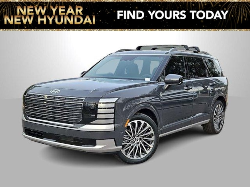 Our 2026 Hyundai Palisade Calligraphy AWD in Ecotronic Gray Pearl redefines the drive with cutting-edge safety, advanced digital displays, and seamless connectivity blended with confident performance. Driven by a 3.5 Liter V6 delivering 287hp through a paddle-shifted 8 Speed Automatic transmission for confident, smooth driving. Engineered with All Wheel Drive and multiple drive modes, this luxury SUV achieves nearly 24mpg on the highway while providing refined handling. Striking from every angle, the Palisade Calligraphy showcases upscale features like signature LED lighting, a dual-pane sunroof, exclusive 20-inch alloy wheels, silver roof rails, a hands-free smart liftgate, and a bold satin chrome grille.