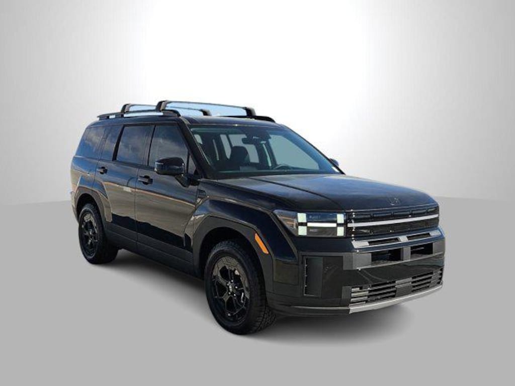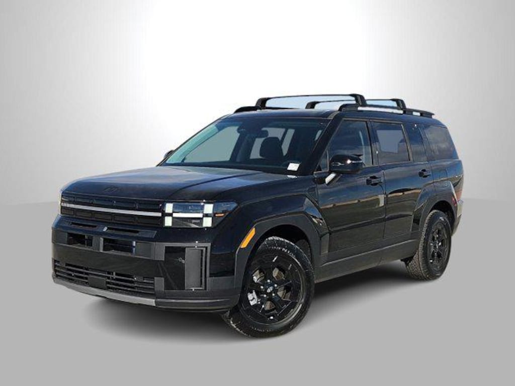 Phantom Black 2026 Hyundai Santa Fe XRT AWD 8-Speed Automatic with SHIFTRONIC 2.5L I4 AWD, Black Premium Synthetic, 3rd row seats: bench, 4-Wheel Disc Brakes, 6 Speakers, ABS brakes, Air Conditioning, Alloy wheels, AM/FM radio: SiriusXM, Apple CarPlay & Android Auto, Auto High-beam Headlights, Automatic temperature control, Brake assist, Bumpers: body-color, Cargo Net, Cargo Tray, Carpeted Floor Mats, Delay-off headlights, Driver door bin, Driver vanity mirror, Dual front impact airbags, Dual front side impact airbags, Electronic Stability Control, Emergency communication system, Exterior Parking Camera Rear, First Aid Kit, Four wheel independent suspension, Front anti-roll bar, Front Bucket Seats, Front Center Armrest, Front dual zone A/C, Front reading lights, Fully automatic headlights, H-Tex Leatherette Seat Trim, Heated door mirrors, Heated Front Bucket Seats, Heated front seats, Illuminated entry, Knee airbag, Leather steering wheel, Low tire pressure warning, Navigation System, Occupant sensing airbag, Option Group 01, Outside temperature display, Overhead airbag, Overhead console, Panic alarm, Passenger door bin, Passenger vanity mirror, Power door mirrors, Power driver seat, Power Liftgate, Power moonroof, Power steering, Power windows, Radio: AM/FM/HD Display Audio, Rear anti-roll bar, Rear seat center armrest, Rear side impact airbag, Rear window defroster, Rear window wiper, Remote keyless entry, Roadside Assistance Kit, Roof Rack Crossbars, Security system, Speed control, Speed-sensing steering, Split folding rear seat, Spoiler, Steering wheel mounted audio controls, Tachometer, Telescoping steering wheel, Tilt steering wheel, Traction control, Trip computer, Turn signal indicator mirrors, Variably intermittent wipers, Wheels: 18 x 7.5J Dark Alloy, AWD, Black Premium Synthetic.