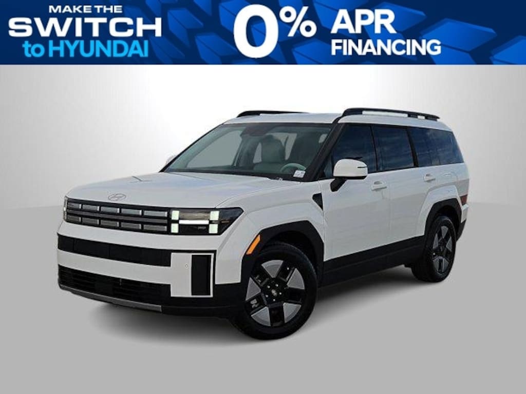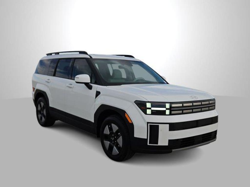 Serenity White 2026 Hyundai Santa Fe Hybrid SEL AWD 6-Speed Automatic with Shiftronic I4 I4, 18 x 7.5J Alloy Wheels, 3rd row seats: bench, 4-Wheel Disc Brakes, 6 Speakers, ABS brakes, Air Conditioning, Alloy wheels, AM/FM radio: SiriusXM, Apple CarPlay & Android Auto, Auto High-beam Headlights, Automatic temperature control, Brake assist, Bumpers: body-color, Cargo Cover/Screen, Cargo Net, Cargo Tray, Carpeted Floor Mats, Delay-off headlights, Driver door bin, Driver vanity mirror, Dual front impact airbags, Dual front side impact airbags, Electronic Stability Control, Emergency communication system, Exterior Parking Camera Rear, First Aid Kit, Four wheel independent suspension, Front anti-roll bar, Front Bucket Seats, Front Center Armrest, Front dual zone A/C, Front reading lights, Fully automatic headlights, H-Tex Leatherette Seat Trim, Heated door mirrors, Heated Front Bucket Seats, Heated front seats, Illuminated entry, Knee airbag, Leather steering wheel, Low tire pressure warning, Mudguards, Occupant sensing airbag, Option Group 01, Outside temperature display, Overhead airbag, Overhead console, Panic alarm, Passenger door bin, Passenger vanity mirror, Power door mirrors, Power driver seat, Power Liftgate, Power steering, Power windows, Radio: AM/FM/HD Display Audio, Rear anti-roll bar, Rear seat center armrest, Rear side impact airbag, Rear window defroster, Rear window wiper, Remote keyless entry, Security system, Speed control, Speed-sensing steering, Split folding rear seat, Spoiler, Steering wheel mounted audio controls, Tachometer, Telescoping steering wheel, Tilt steering wheel, Traction control, Trip computer, Turn signal indicator mirrors, Variably intermittent wipers, I4.