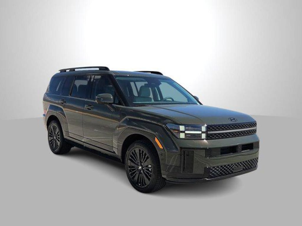 Rockwood Green 2026 Hyundai Santa Fe Hybrid Calligraphy AWD 6-Speed Automatic with Shiftronic I4 I4, 12 Speakers, 3rd row seats: bench, 4-Wheel Disc Brakes, ABS brakes, Air Conditioning, Alloy wheels, AM/FM radio: SiriusXM, Apple CarPlay & Android Auto, Auto High-beam Headlights, Auto-dimming Rear-View mirror, Automatic temperature control, Brake assist, Bumpers: body-color, Carpeted Floor Mats, Delay-off headlights, Driver door bin, Driver vanity mirror, Dual front impact airbags, Dual front side impact airbags, Electronic Stability Control, Emergency communication system, Exterior Parking Camera Rear, Four wheel independent suspension, Front anti-roll bar, Front Bucket Seats, Front Center Armrest, Front dual zone A/C, Front reading lights, Fully automatic headlights, Garage door transmitter: HomeLink, Heads-Up Display, Heated and Ventilated Front Bucket Seats, Heated door mirrors, Heated front seats, Heated rear seats, Heated steering wheel, Illuminated entry, Knee airbag, Leather steering wheel, Low tire pressure warning, Memory seat, Navigation System, Occupant sensing airbag, Option Group 01, Outside temperature display, Overhead airbag, Overhead console, Panic alarm, Passenger door bin, Passenger vanity mirror, Power door mirrors, Power driver seat, Power Liftgate, Power moonroof, Power passenger seat, Power steering, Power windows, Quilted Premium Nappa Leather Seat Trim, Radio: AM/FM/HD Bose Premium Audio System, Rain sensing wipers, Rear anti-roll bar, Rear side impact airbag, Rear window defroster, Rear window wiper, Remote keyless entry, Security system, Speed control, Speed-sensing steering, Split folding rear seat, Spoiler, Steering wheel mounted audio controls, Tachometer, Telescoping steering wheel, Tilt steering wheel, Traction control, Trip computer, Turn signal indicator mirrors, Variably intermittent wipers, Ventilated front seats, Wheels: 20 x 8.5J Unique Dark Finish Alloy, I4.