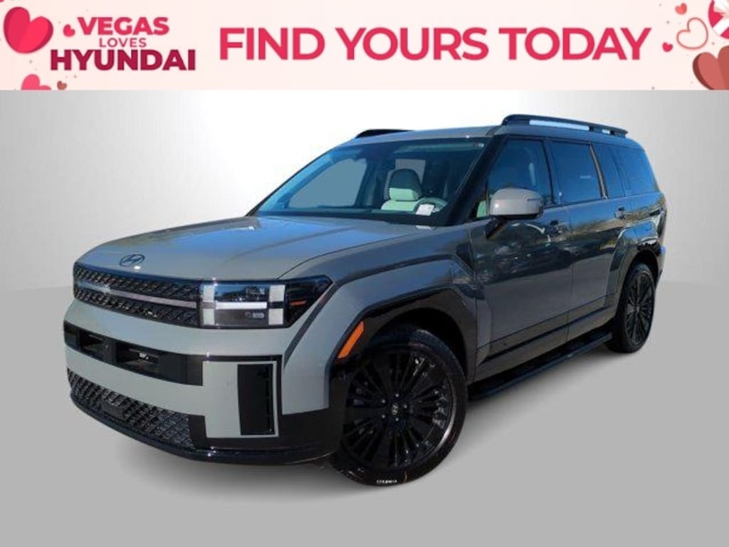 Hampton Gray 2026 Hyundai Santa Fe Hybrid Calligraphy AWD 6-Speed Automatic with Shiftronic I4 I4, 12 Speakers, 3rd row seats: bench, 4-Wheel Disc Brakes, ABS brakes, Air Conditioning, Alloy wheels, AM/FM radio: SiriusXM, Apple CarPlay & Android Auto, Auto High-beam Headlights, Auto-dimming Rear-View mirror, Automatic temperature control, Brake assist, Bumpers: body-color, Carpeted Floor Mats, Delay-off headlights, Driver door bin, Driver vanity mirror, Dual front impact airbags, Dual front side impact airbags, Electronic Stability Control, Emergency communication system, Exterior Parking Camera Rear, Four wheel independent suspension, Front anti-roll bar, Front Bucket Seats, Front Center Armrest, Front dual zone A/C, Front reading lights, Fully automatic headlights, Garage door transmitter: HomeLink, Heads-Up Display, Heated door mirrors, Heated front seats, Heated rear seats, Heated steering wheel, Illuminated entry, Knee airbag, Leather steering wheel, Low tire pressure warning, Memory seat, Navigation System, Occupant sensing airbag, Option Group 01, Outside temperature display, Overhead airbag, Overhead console, Panic alarm, Passenger door bin, Passenger vanity mirror, Power door mirrors, Power driver seat, Power Liftgate, Power moonroof, Power passenger seat, Power steering, Power windows, Quilted Premium Nappa Leather Seat Trim, Radio: AM/FM/HD Bose Premium Audio System, Rain sensing wipers, Rear anti-roll bar, Rear side impact airbag, Rear window defroster, Rear window wiper, Remote keyless entry, Security system, Speed control, Speed-sensing steering, Split folding rear seat, Spoiler, Steering wheel mounted audio controls, Tachometer, Telescoping steering wheel, Tilt steering wheel, Traction control, Trip computer, Turn signal indicator mirrors, Variably intermittent wipers, Ventilated front seats, Wheels: 20 x 8.5J Unique Dark Finish Alloy, I4.