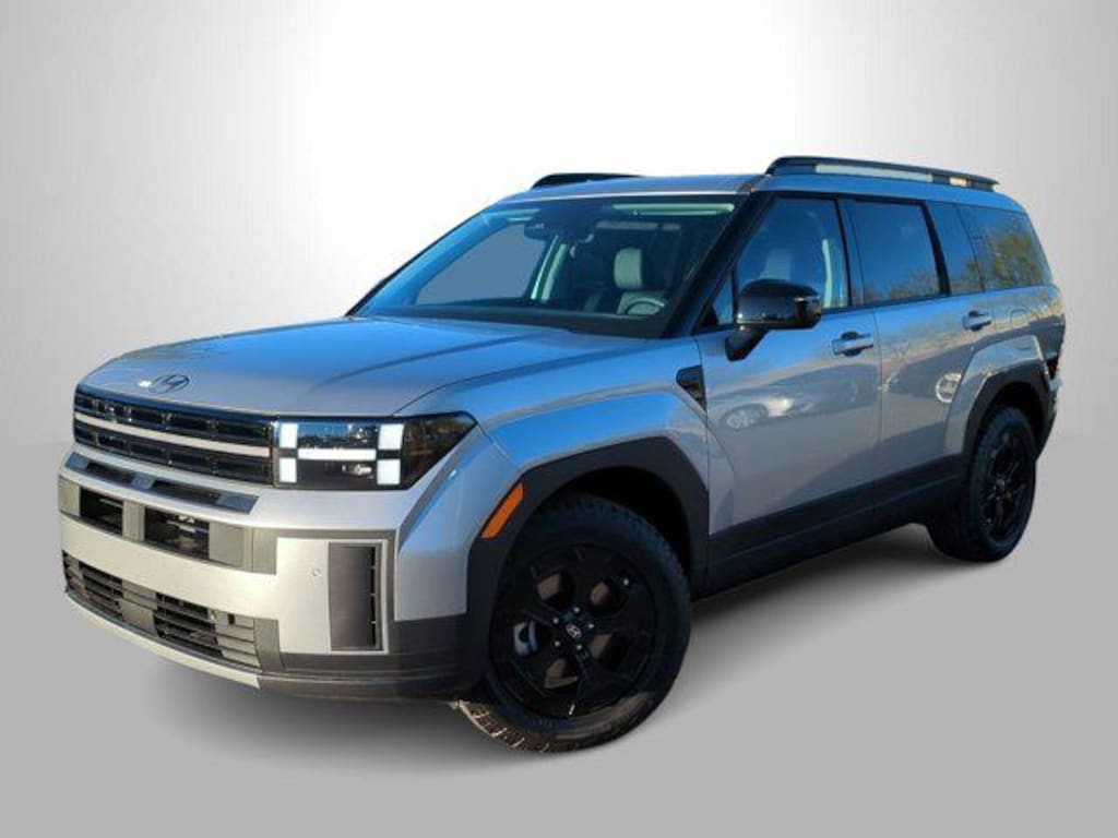 Shimmering Silver Pearl 2026 Hyundai Santa Fe XRT AWD 8-Speed Automatic with SHIFTRONIC 2.5L I4 AWD, Black Premium Synthetic, 3rd row seats: bench, 4-Wheel Disc Brakes, 6 Speakers, ABS brakes, Air Conditioning, All Season Fitted Liners, Alloy wheels, AM/FM radio: SiriusXM, Apple CarPlay & Android Auto, Auto High-beam Headlights, Automatic temperature control, Brake assist, Bumpers: body-color, Cargo Cover/Screen, Cargo Net, Carpeted Floor Mats, Delay-off headlights, Driver door bin, Driver vanity mirror, Dual front impact airbags, Dual front side impact airbags, Electronic Stability Control, Emergency communication system, Exterior Parking Camera Rear, First Aid Kit, Four wheel independent suspension, Front anti-roll bar, Front Bucket Seats, Front Center Armrest, Front dual zone A/C, Front reading lights, Fully automatic headlights, H-Tex Leatherette Seat Trim, Heated door mirrors, Heated Front Bucket Seats, Heated front seats, Illuminated entry, Knee airbag, Leather steering wheel, Low tire pressure warning, Navigation System, Occupant sensing airbag, Option Group 01, Outside temperature display, Overhead airbag, Overhead console, Panic alarm, Passenger door bin, Passenger vanity mirror, Power door mirrors, Power driver seat, Power Liftgate, Power moonroof, Power steering, Power windows, Radio: AM/FM/HD Display Audio, Rear anti-roll bar, Rear seat center armrest, Rear side impact airbag, Rear window defroster, Rear window wiper, Remote keyless entry, Security system, Speed control, Speed-sensing steering, Split folding rear seat, Spoiler, Steering wheel mounted audio controls, Tachometer, Telescoping steering wheel, Tilt steering wheel, Traction control, Trip computer, Turn signal indicator mirrors, Variably intermittent wipers, Wheels: 18 x 7.5J Dark Alloy, AWD, Black Premium Synthetic.