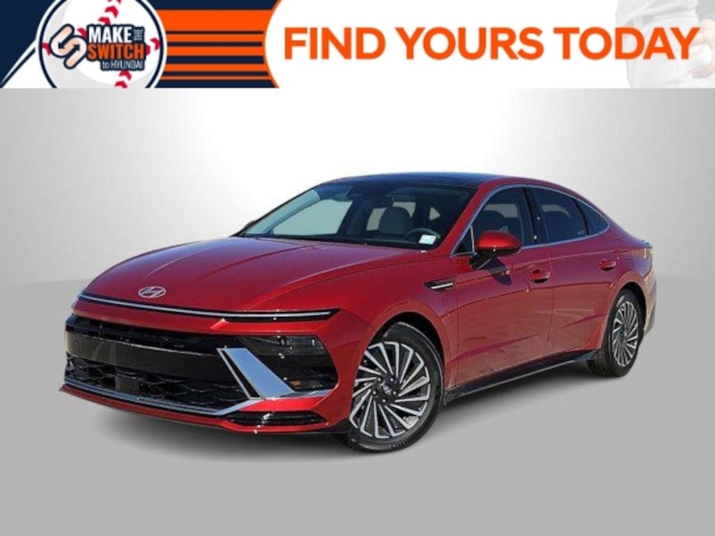 Our 2026 Hyundai Sonata Hybrid SEL Sedan in Ultimate Red keeps every journey efficient, connected, and stylish with advanced hybrid tech. Motivated by a 2.0 Liter 4 Cylinder and an Electric Motor generating a combined 192hp to a paddle-shifted 6 Speed Automatic transmission for sportier driving. Also impressively maneuverable, this Front Wheel Drive sedan scores nearly 51mpg on the highway with great ratings in the city, too. Crafted with a bold appearance, our Sonata boasts a hands-free trunk, LED lighting, a black mesh grille, gloss-black rocker panels, alloy wheels, dual exhaust outlets, and a rear spoiler.