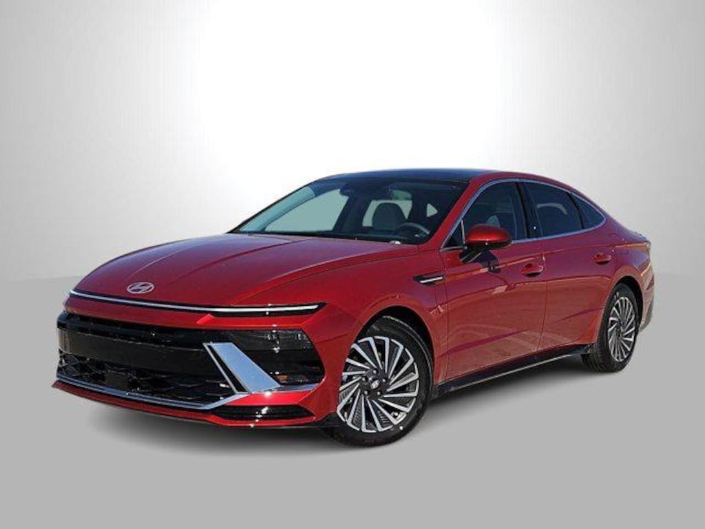 Ultimate Red 2026 Hyundai Sonata Hybrid SEL FWD 6-Speed Automatic with Shiftronic I4 I4, 17 x 7.0J Aluminum Alloy Wheels, 4-Wheel Disc Brakes, 6 Speakers, ABS brakes, Air Conditioning, Alloy wheels, AM/FM radio: SiriusXM, Apple CarPlay & Android Auto, Auto High-beam Headlights, Automatic temperature control, Brake assist, Bumpers: body-color, Cargo Net, Cargo Tray, Carpeted Floor Mats, Delay-off headlights, Driver door bin, Driver vanity mirror, Dual front impact airbags, Dual front side impact airbags, Electronic Stability Control, Emergency communication system: None, First Aid Kit, Four wheel independent suspension, Front anti-roll bar, Front Bucket Seats, Front Center Armrest, Front dual zone A/C, Front reading lights, Fully automatic headlights, Heated door mirrors, Heated Front Bucket Seats, Heated front seats, Illuminated entry, Knee airbag, Lane Departure Warning System, Leather steering wheel, Low tire pressure warning, Occupant sensing airbag, Option Group 01, Outside temperature display, Overhead airbag, Overhead console, Panic alarm, Passenger door bin, Passenger vanity mirror, Power door mirrors, Power driver seat, Power moonroof, Power steering, Power windows, Premium Cloth Seating Surfaces, Radio data system, Radio: AM/FM/HD/MP3/SiriusXM, Rear anti-roll bar, Rear seat center armrest, Rear side impact airbag, Rear window defroster, Remote keyless entry, Security system, Speed control, Speed-sensing steering, Speed-Sensitive Wipers, Split folding rear seat, Spoiler, Steering wheel mounted audio controls, Tachometer, Telescoping steering wheel, Tilt steering wheel, Traction control, Trip computer, Variably intermittent wipers, I4.