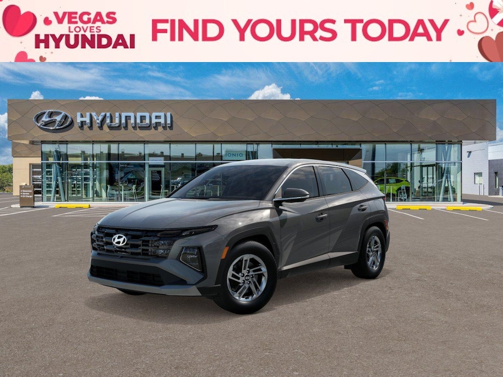 Hampton Gray 2026 Hyundai Tucson SE FWD 8-Speed Automatic with SHIFTRONIC 2.5L I4 DGI DOHC 16V LEV3-SULEV30 187hp 17 x 7.0J Alloy Wheels, 4-Wheel Disc Brakes, 6 Speakers, ABS brakes, Air Conditioning, Alloy wheels, AM/FM radio: SiriusXM, Apple CarPlay & Android Auto, Auto High-beam Headlights, Brake assist, Bumpers: body-color, Cargo Cover, Cargo Net, Carpeted Floor Mats, Cloth Seat Trim, Delay-off headlights, Driver door bin, Driver vanity mirror, Dual front impact airbags, Dual front side impact airbags, Electronic Stability Control, Emergency communication system: None, Four wheel independent suspension, Front anti-roll bar, Front Bucket Seats, Front Center Armrest, Front reading lights, Fully automatic headlights, Illuminated entry, Low tire pressure warning, Occupant sensing airbag, Option Group 01, Outside temperature display, Overhead airbag, Overhead console, Panic alarm, Passenger door bin, Passenger vanity mirror, Power door mirrors, Power steering, Power windows, Radio data system, Radio: AM/FM/HD Audio System, Rear anti-roll bar, Rear reading lights, Rear seat center armrest, Rear side impact airbag, Rear window defroster, Rear window wiper, Remote keyless entry, Security system, Speed control, Split folding rear seat, Spoiler, Steering wheel mounted audio controls, Tachometer, Telescoping steering wheel, Tilt steering wheel, Traction control, Trip computer, Variably intermittent wipers.