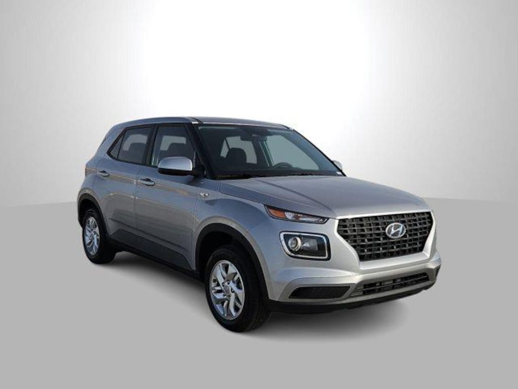 Shimmering Silver 2026 Hyundai Venue SE FWD CVT I4 6 Speakers, ABS brakes, Air Conditioning, Alloy wheels, AM/FM radio, Apple CarPlay & Android Auto, Auto High-beam Headlights, Brake assist, Bumpers: body-color, Cargo Net, Carpeted Floor Mats, Cloth Seat Trim, Delay-off headlights, Driver door bin, Driver vanity mirror, Dual front impact airbags, Dual front side impact airbags, Electronic Stability Control, First Aid Kit, Front anti-roll bar, Front Bucket Seats, Front Center Armrest, Front reading lights, Front wheel independent suspension, Fully automatic headlights, Illuminated entry, Low tire pressure warning, Occupant sensing airbag, Option Group 01, Outside temperature display, Overhead airbag, Overhead console, Panic alarm, Passenger door bin, Passenger vanity mirror, Power door mirrors, Power steering, Power windows, Radio: AM/FM/HD Display Audio, Rear Seat Cup Holder, Rear window defroster, Rear window wiper, Remote keyless entry, Roadside Assistance Kit, Security system, Speed control, Speed-sensing steering, Split folding rear seat, Spoiler, Steering wheel mounted audio controls, Tachometer, Telescoping steering wheel, Tilt steering wheel, Traction control, Trip computer, Variably intermittent wipers, Wheels: 6.0J x 15 Alloy.