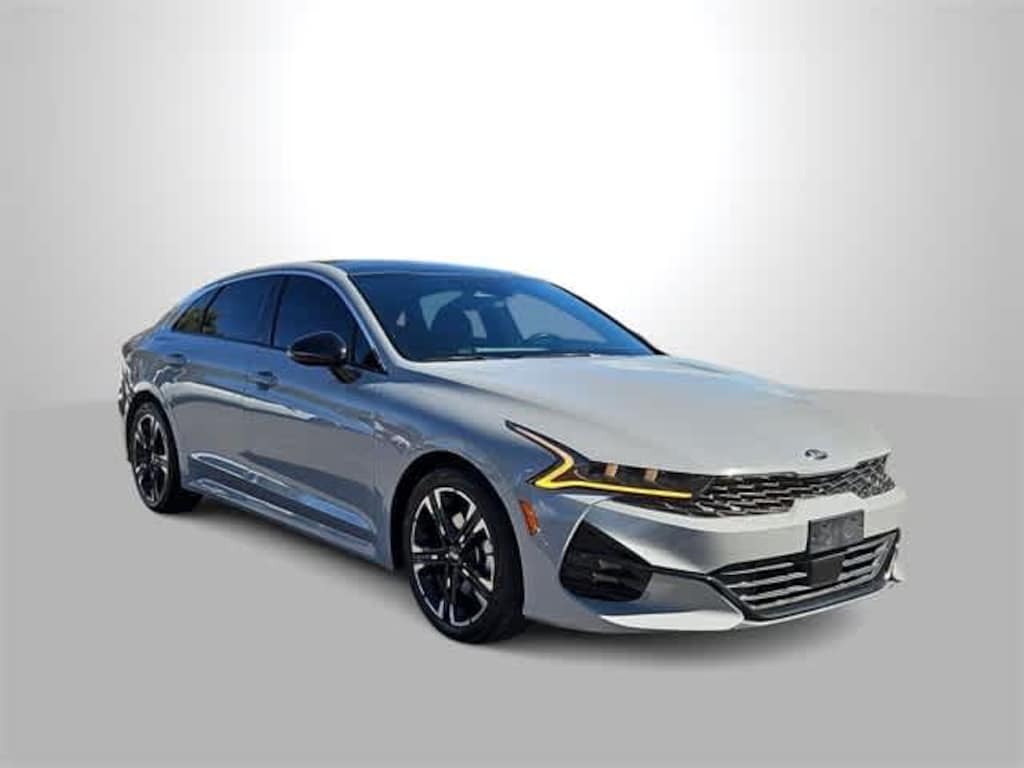 Go ahead and show off our One Owner, No Accidents Reported 2021 Kia K5 GT-Line AWD Sedan with you at the wheel and a bold Wolf Gray finish on its sheet metal! Powered by a TurboCharged 1.6 Liter 4 Cylinder offering 180hp paired with an 8 Speed Automatic transmission for energetic performance. This All Wheel Drive sedan taps into the joy of driving with its sophisticated suspension, and it returns nearly 34mpg on the highway to help save fuel. A stunning high-end design is yours to command with our K5, which boasts LED lighting, fog lamps, and aggressive body styling set off by 18-inch black-finished alloy wheels.