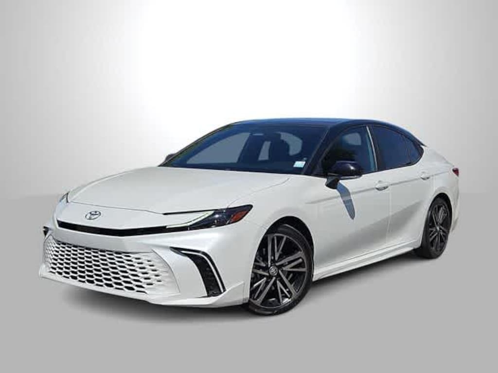 Our One Owner, No Accidents Reported 2025 Toyota Camry XSE Sedan in Wind Chill Pearl w/ Midnight Black Metallic Roof is a sporty driving machine that doesnt spend a lot of time filling up! Powered by a 2.5 Liter 4 Cylinder and 2 Electric Motors supplying a combined 225hp to a paddle-shifted eCVT to take matters into your own hands. A sport-tuned suspension helps carry the fun into the curves, and this Front Wheel Drive scores nearly 47mpg in the city and nearly 48mpg on the highway. A head-turning hybrid, our Camry boasts LED lighting, 19-inch alloy wheels, racing-inspired front air curtains, a sunroof, dual chrome exhaust tips, a sport-mesh grille, a black rear spoiler, and a sport-style rear diffuser.
